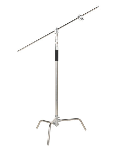 The C-Stand can be used in many different ways and is a multifaceted tool. You can even use it as a portable backdrop stand by removing the extension arm and adding a crossbar. Or you can use the extension arm to install a smaller sized backdrop. It can be used to set up studio lights at different heights. The entire set up is also perfect for using as a boom stand.