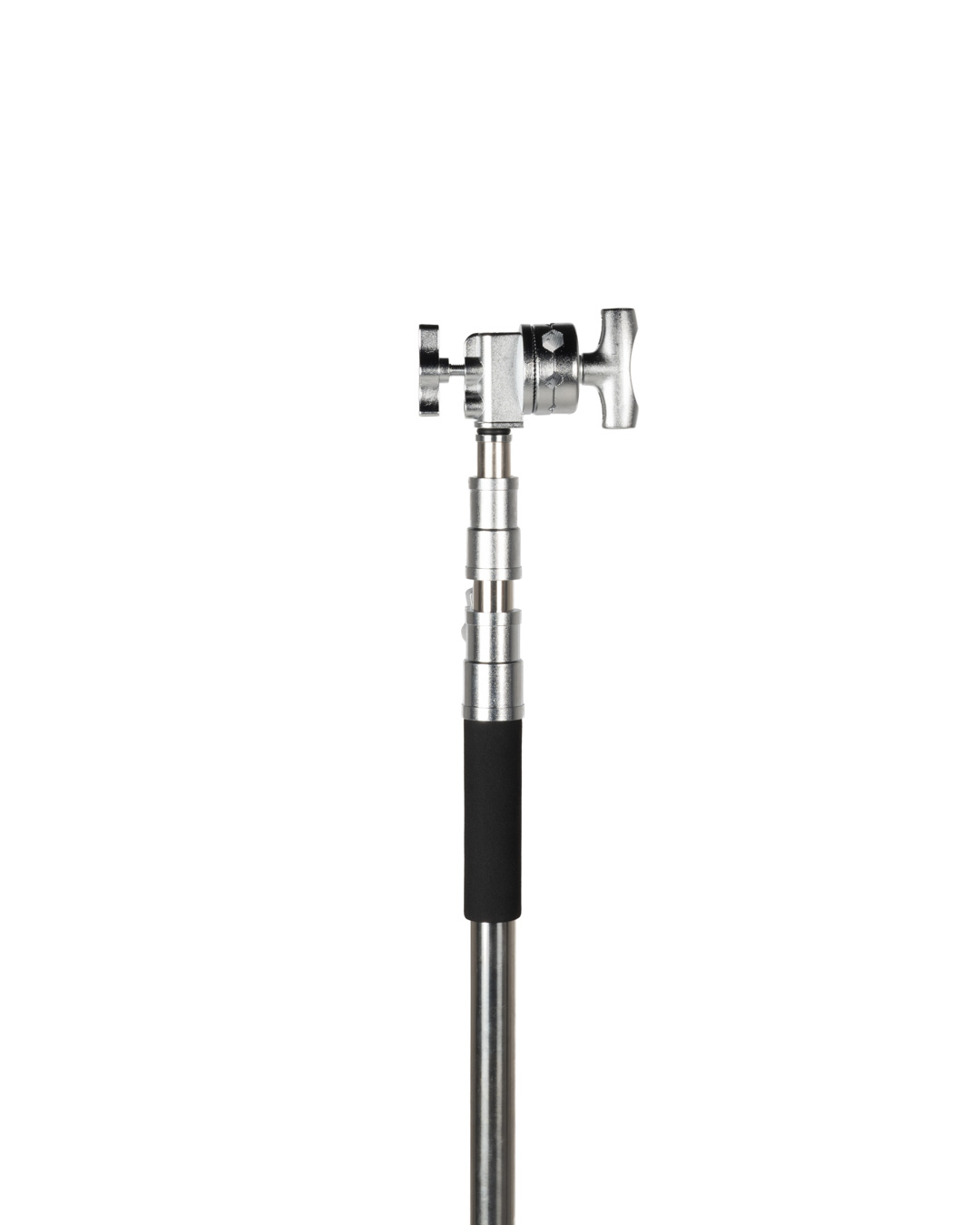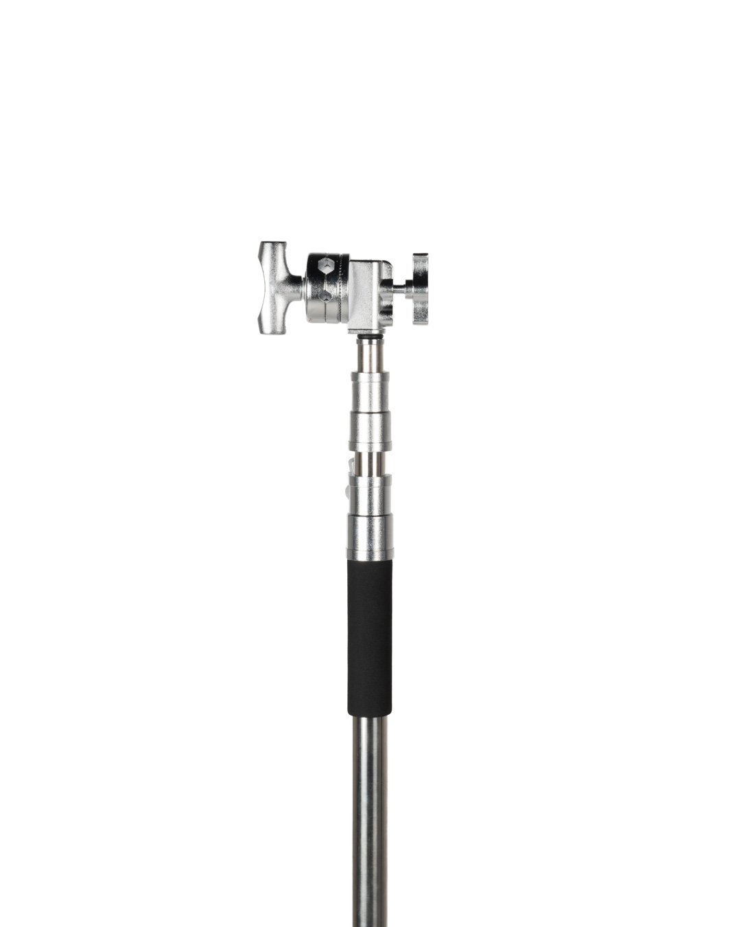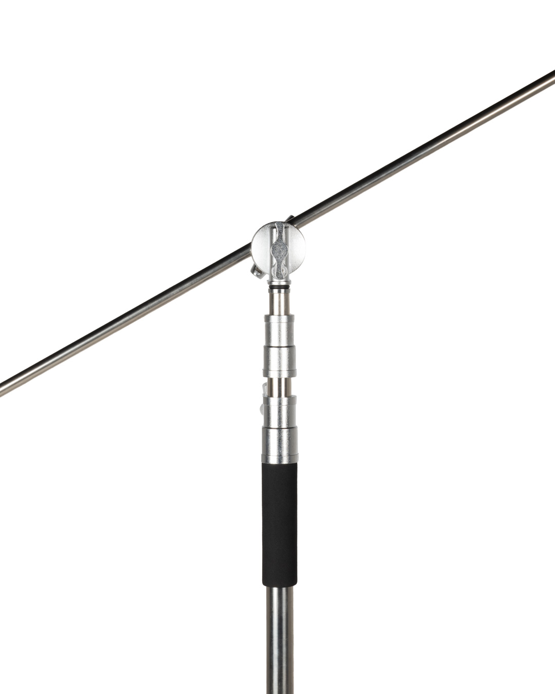 The included extension grip arm fits neatly into the stand’s removable 2.5 inch grip head. It allows you to position lights, gobos, and flags at any height or position you want. The second grip head can be used to mount another product. You can offset the stand as needed to keep it out of the way of action. Each riser section has a spring based mechanism that protects your equipment from any sudden drops in stand elevation.