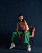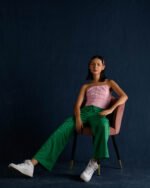 • Image with model uses creative lighting and backdrop color may vary